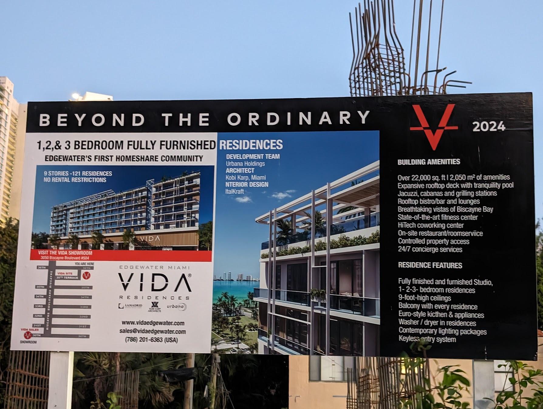 A construction crane has been positioned at a property in Edgewater where Vida Residences are slated to be developed.