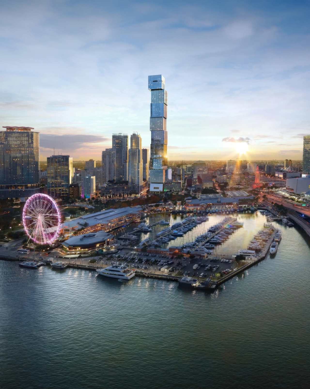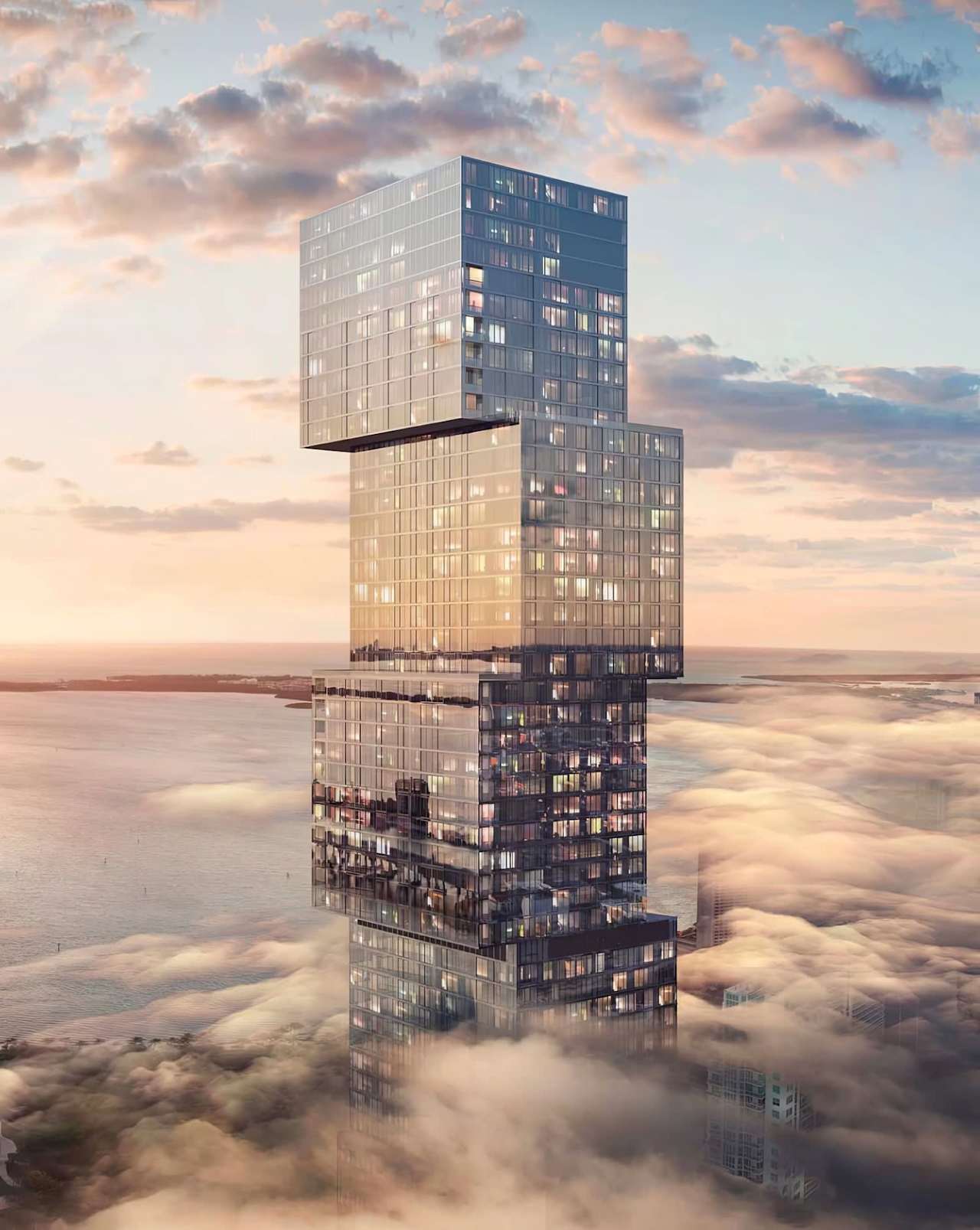 The Waldorf Astoria Hotel & Residences is set to make history as Miami's and Florida's first supertall structure, boasting a distinctive design comprising nine stacked offset glass cubes. Approved by the Federal Aviation Administration (FAA), the skyscraper will stand at a remarkable height of 1,038 feet above ground.