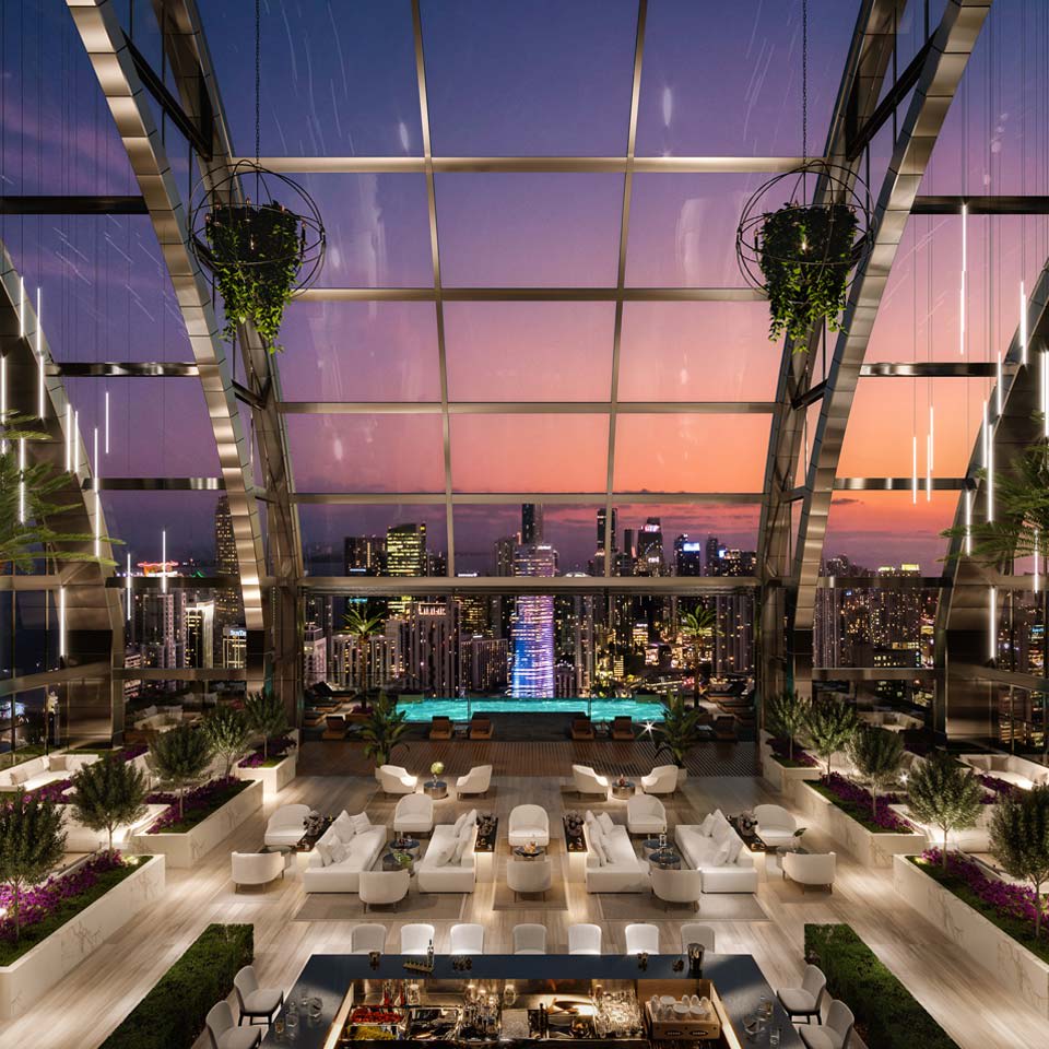 The Atrium can be an intimate place for guests and residents while also being the ultimate event space in Miami. This fully enclosed 7-story glass rooftop will have soaring views of downtown while featuring a cantilevered Singapore styled pool that is certain to be one of the most recognized destinations in Miami. This unique experience that will welcome visitors and group stays from afar is the same reason you should want to buy.