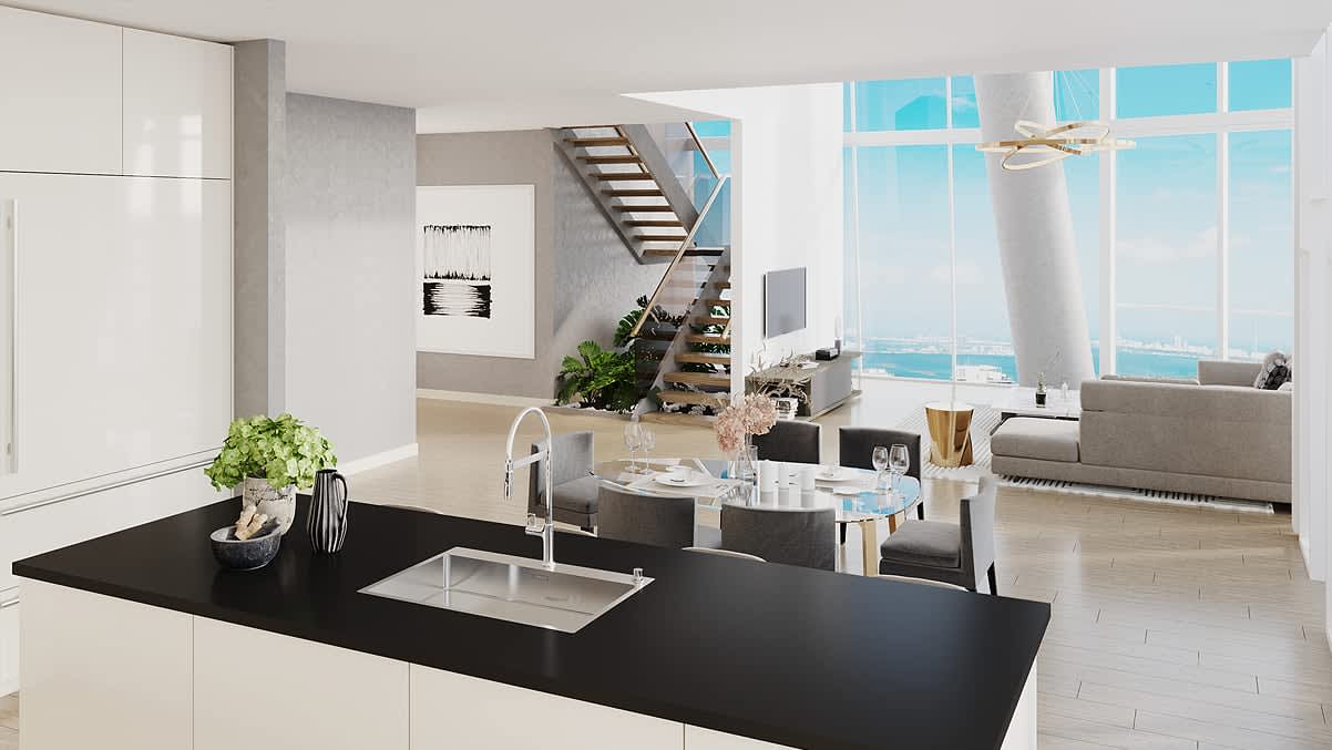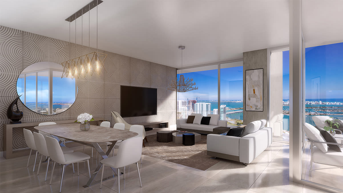 Open floor plans ranging from 1,070 to 3,100 square feet feature sleek, contemporary interior design and select finishes and elements by Artefacto which further set these unique homes in the sky apart. This is urban Miami luxury at a level never seen before.